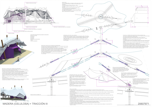 ejercicio de exploración de la materialidad de la celulosa a tracción, buscando un espacio etéreo que se relaciona con el entorno a través de la superposición de finas láminas translúcidas. . |