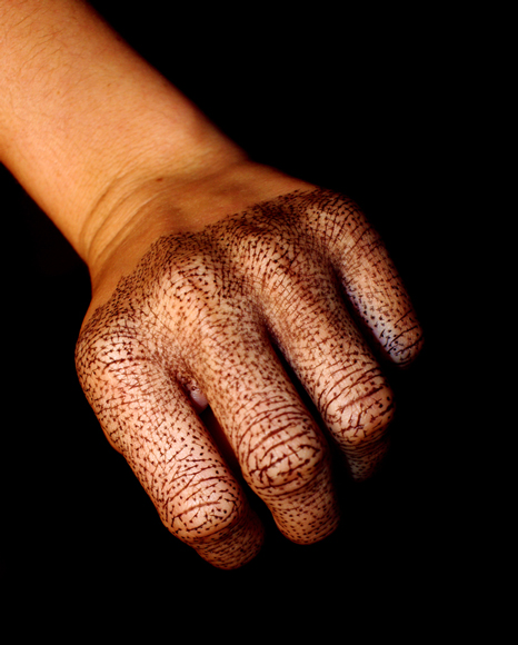 exploración/redefinición de valores de belleza respecto al paisaje. concepto de antibelleza, al menos entendido desde el punto de vista actual (PREJUICIO SOCIAL) en occidente. Desarrollar la textura de la macroestructura de la piel de la mano de una persona. el objetivo es, contrario al sentimiento de belleza estandarizado, destacar los pliegues y arrugas de la piel; los huecos, surcos, manchas... todas las imperfeccionesque hacen de ella algo único, resultado de sucesivos movimientos en el tiempo.